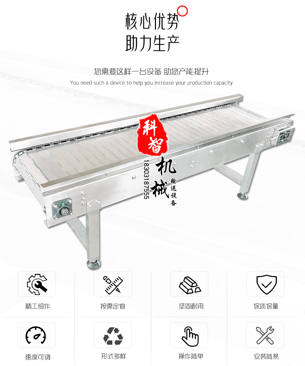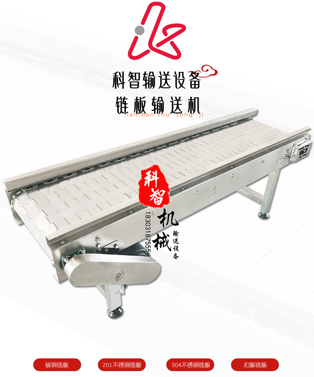 不銹鋼鏈板輸送機是以不銹鋼鏈板為輸送載體,該機具有以下特性: