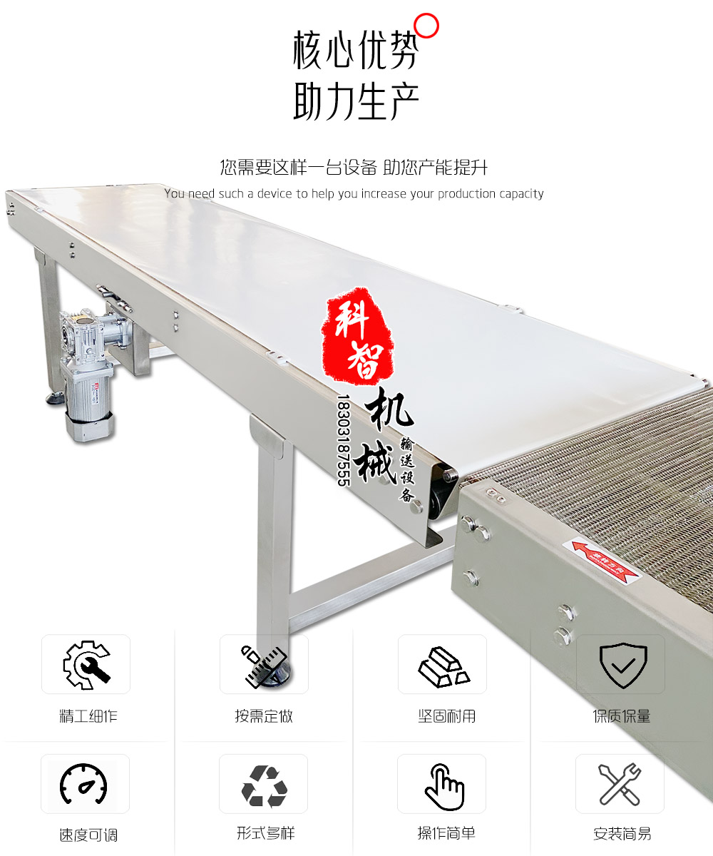 刀口皮帶輸送機(jī)可以和不同直線式輸送機(jī)對(duì)接,輸送平穩(wěn)無(wú)噪音,適合食品、電子、化學(xué)、印刷等行業(yè)。