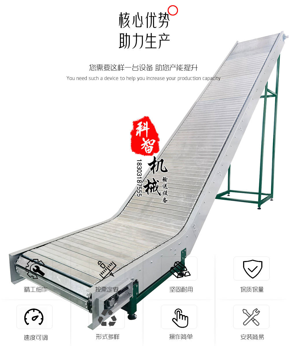 2) 鏈板提升輸送機(jī)可用于高度落差間搬運(yùn)物品,為防止物品在傾斜面上滑動(dòng)。