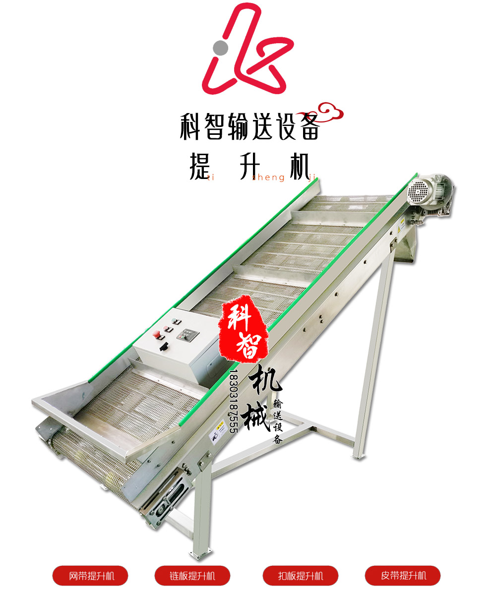 輸送帶類型:鏈板提升機(jī)、網(wǎng)帶提升機(jī)、皮帶提升機(jī)、斗式提升機(jī)、螺旋提升流水線。