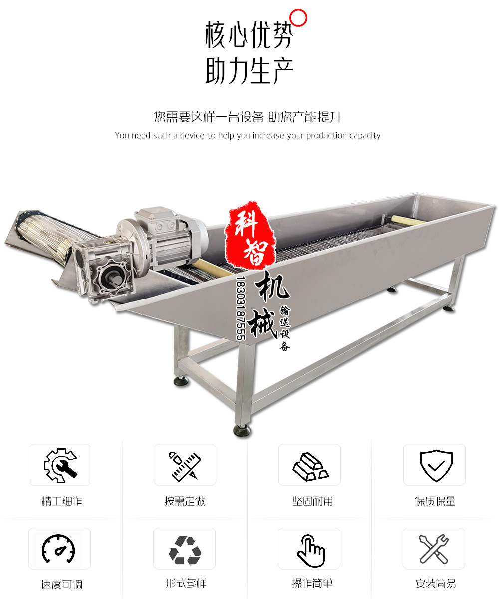 3.水箱網(wǎng)帶輸送機(jī)驅(qū)動(dòng)方式:減速電機(jī)驅(qū)動(dòng),調(diào)速方式:變頻調(diào)速、無極變速。機(jī)架材質(zhì):不銹鋼、碳鋼。